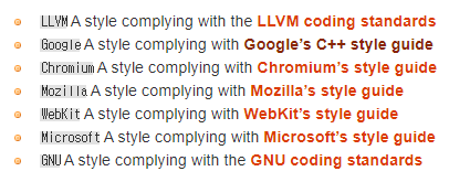 코딩 스타일을 "Google" 외에도 아래와 같이 선택 가능한 항목이 있다. (링크)