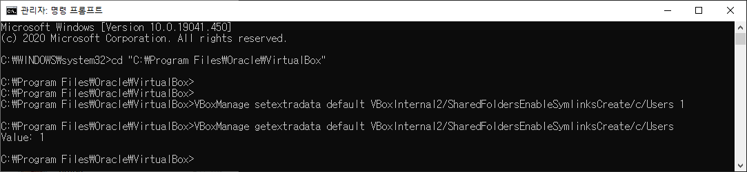 ※ 추가적으로 VirtualBox를 완전히 종료 후 관리자 권한으로 실행 해야한다.