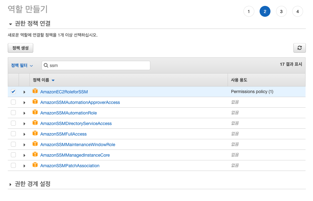 AmazonEC2RoleforSSM 선택