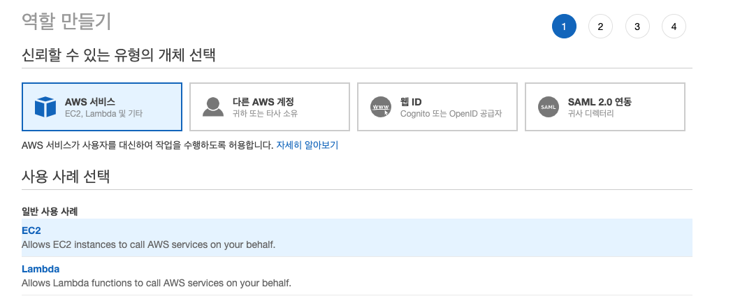 콘솔 접속 > IAM > 역할 > 역할 생성