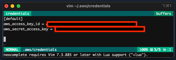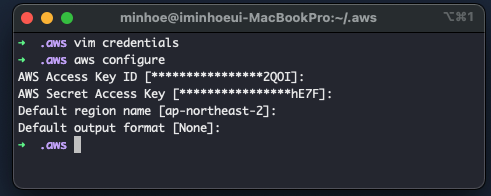 aws_secret_access_key = {IAM 콘솔에서 발급 받은 키}