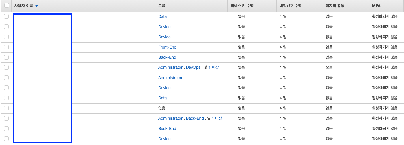 - DevOps : 전체적인 인프라 관리하는 개발자가 속한 그룹입니다. (기본적으로 전체 서비스 접근 가능합니다.)