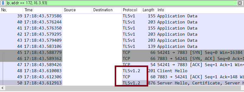 최근에 회사 제품의 TLS v1.2 지원관련해서 테스트 중에 다른 PC에서는 와이어 샤크를 통해서 확인했는데 내 PC에서만 TLS 버전이 출력되지 않는 증상이 발생했다.