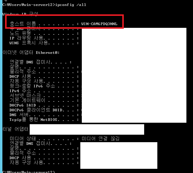 ※ Host Name은 cmd(명령 프롬프트)에서 ipconfig /all 명령어로 확인 가능