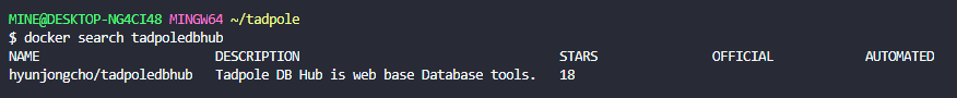 docker search tadpoledbhub