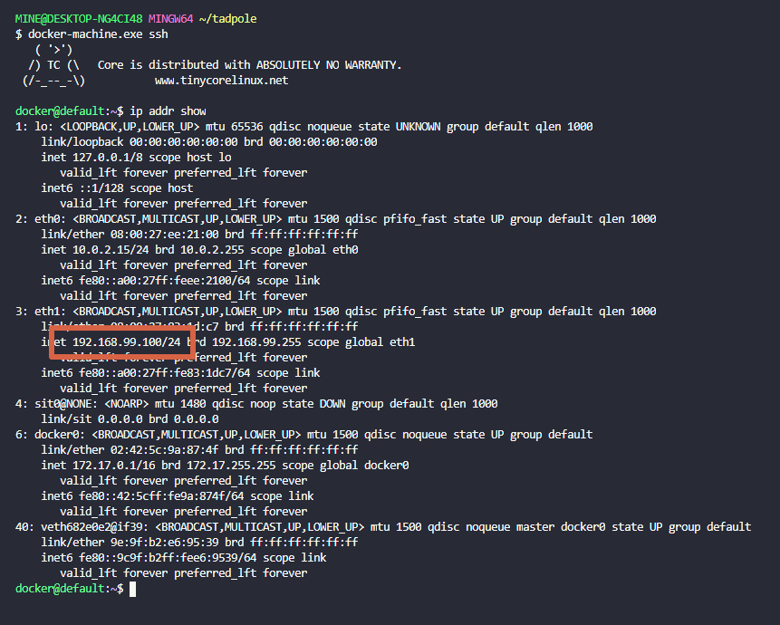 # Docker Machine에서 IP 확인 명령어