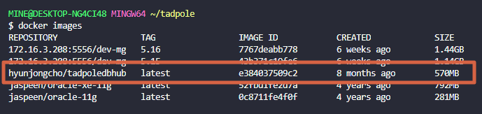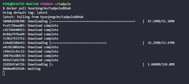 docker pull hyunjongcho/tadpoledbhub