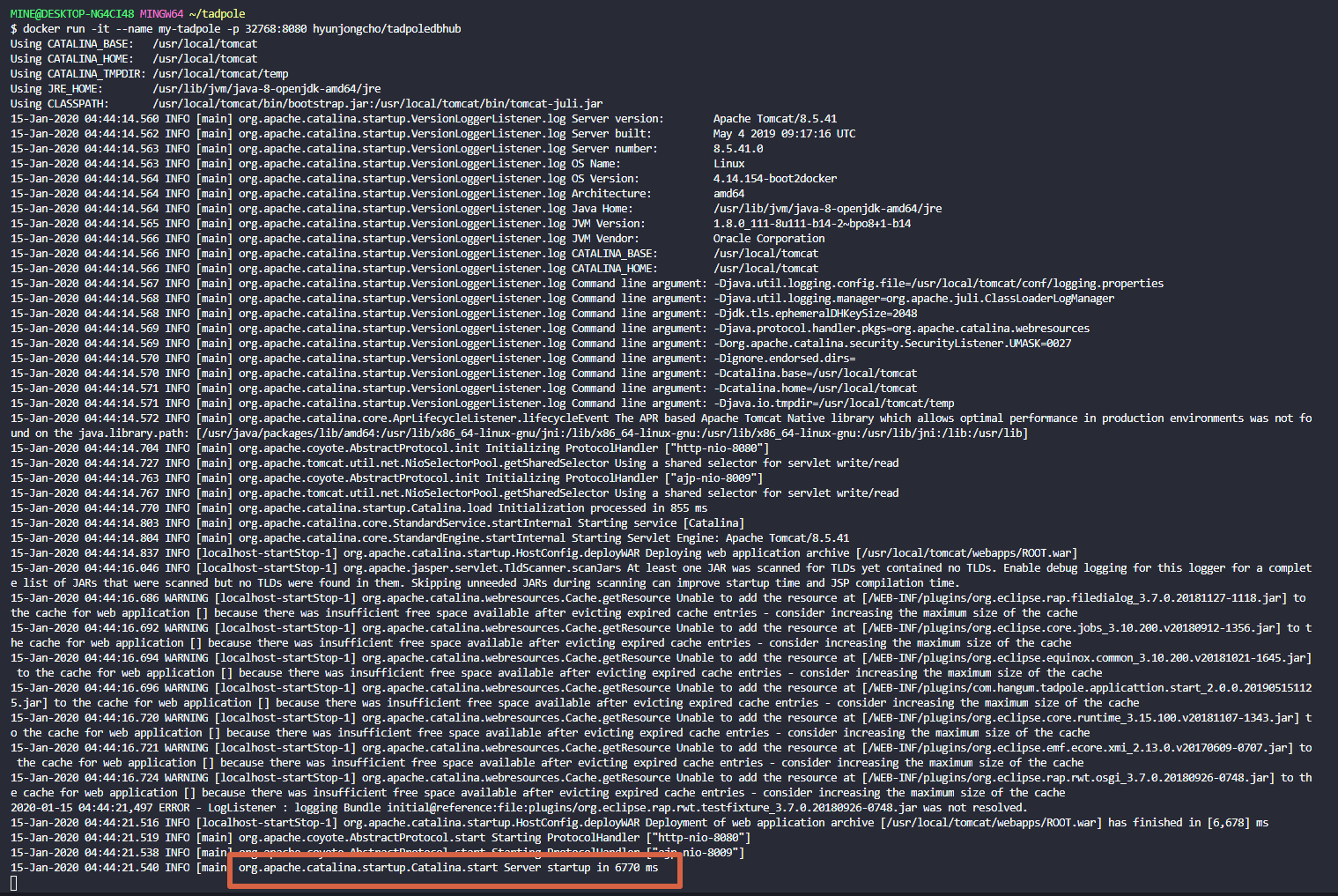 docker run -it --name {컨테이너 명} -p {사용을 원하는 포트}:8080 hyunjongcho/tadpoledbhub