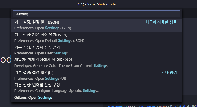 1. VSCode 열기 및 Setting (JSON) 창 열기