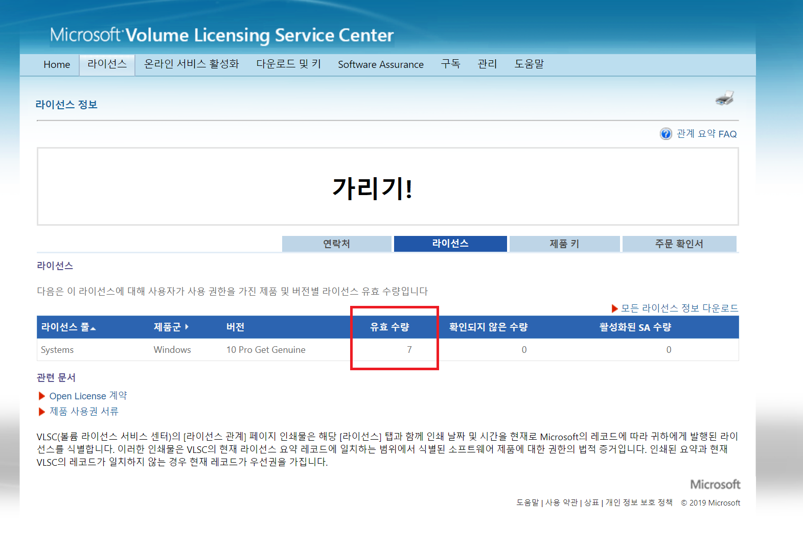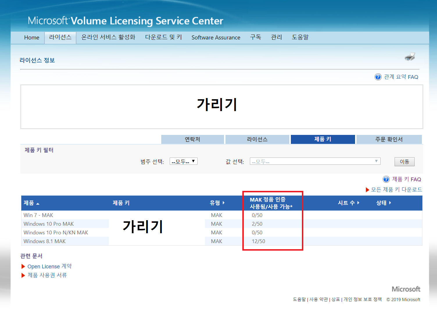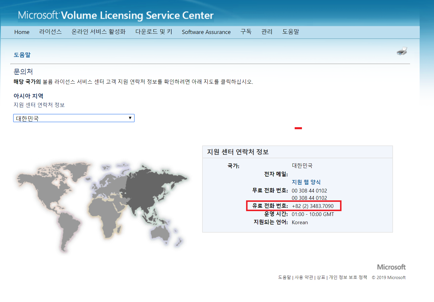 결국 답답해서 직접 MS Volume Licensing service Center에 전화로 문의 했다.
