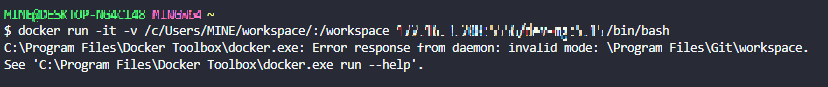 C:\Program Files\Docker Toolbox\docker.exe: Error response from daemon: invalid mode: \Program Files\Git\workspace.