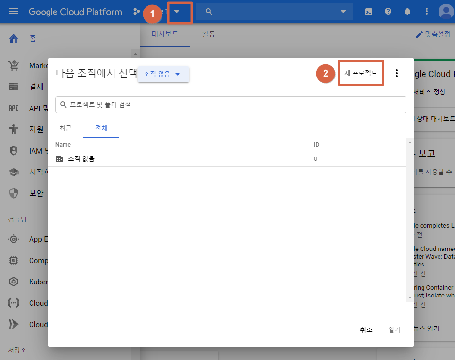 Google Cloud Console(https://console.cloud.google.com/)로 접속하여 로그인