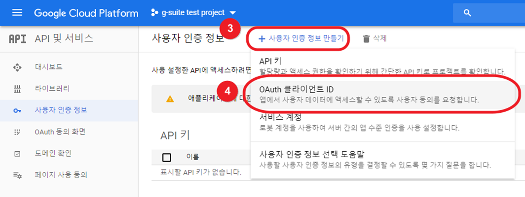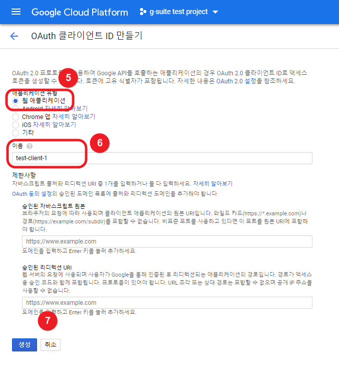 4. OAuth 클라이언트 ID 생성